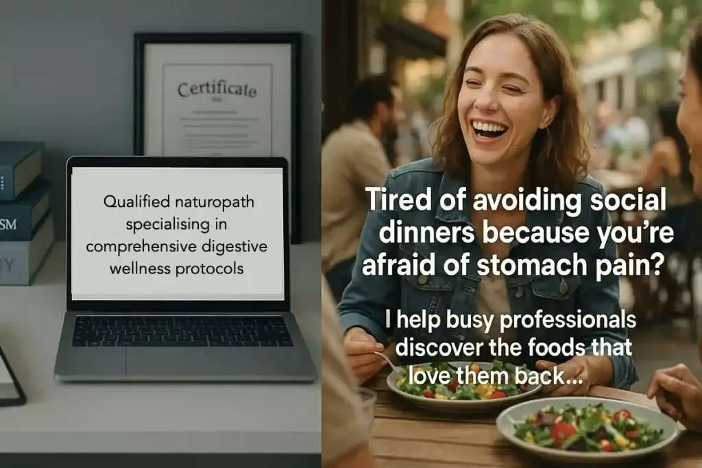 It’sTime To Write in Your Audience’s Language You know you can transform lives. You’ve spent years mastering your craft, accumulating qualifications, and developing your unique therapeutic approach. Yet potential clients aren’t finding you, and when they do visit your website, they’re not booking appointments. Here’s a startling reality: most potential clients thoroughly research natural health practitioners online before making contact. And now, there is an increasing trend to utilise AI for research, with tools like ChatGPT, Perplexity, and Gemini, among others. However, many practitioner websites use clinical language that doesn’t resonate with people seeking relief from their daily struggles. There’s one simple copywriting framework that changes everything – and you probably already use it naturally in your consultations without realising it. The Problem Most Practitioners Face Walk into any natural health practice and you’ll see beautifully framed certificates on the walls, detailed treatment descriptions, and impressive lists of qualifications. Visit their website, and you’ll find the same approach: leading with credentials rather than connection. “Qualified Naturopath specialising in comprehensive digestive wellness protocols using evidence-based herbal therapeutics.” Sound familiar? It’s practitioner language: technically accurate but emotionally distant. “I see practitioners writing about ‘supporting optimal liver function’ when their ideal clients just want to ‘stop feeling tired all the time.’ The disconnect happens because we’re speaking to ourselves, not to the person who desperately needs our help.” ~ James Burgin Most practitioners make three critical copywriting mistakes: Mistake #1: Features Instead of BenefitsThey list what they do (herbal medicine, nutritional therapy, manual techniques) rather than what clients get (better sleep, more energy, pain relief). Mistake #2: Clinical Language Over Client LanguageThey use terms like “inflammatory markers” when clients think of “joint pain that makes me cranky.” Mistake #3: Leading with Credentials Rather than ConnectionThey assume qualifications create trust, when emotional understanding creates connection first. The result? Websites that impress other practitioners but fail to convert the people they’re designed to help. Common Copywriting Mistakes in Healthcare Website conversion failures are usually a result of deeper issues. The PAS Framework: Your Natural Communication Style in Writing Here’s what’s fascinating: you already use the perfect copywriting framework in every consultation. It’s called PAS (Problem, Agitation, Solution), and it mirrors exactly how you naturally assess and help clients. Problem: You identify what’s bothering themAgitation: You explore how it’s impacting their lifeSolution: You guide them toward resolution The magic happens when you translate this natural therapeutic process into written communication that attracts ideal clients before they even book their first appointment. The Problem Phase: Speaking Their Language Instead of clinical terminology, use the exact words your ideal clients use to describe their struggles. Listen carefully during consultations—they’re giving you copywriting gold. Practitioner Language: “Experiencing suboptimal digestive function”Client Language: “Struggling with bloating that makes me feel pregnant by 3 pm” Practitioner Language: “Managing stress-related cortisol dysregulation”Client Language: “Feeling overwhelmed and exhausted despite sleeping 8 hours” Your problem statement should prompt your ideal client to think, “Finally, someone who understands exactly what I’m going through.” The Agitation Phase: The Emotional Connection Point This isn’t about creating fear or manipulating emotions. It’s about acknowledging the real impact their problem has on their quality of life. It’s therapeutic validation in written form. Explore how their symptoms affect: Daily activities: “When afternoon fatigue hits, you can barely focus on important work projects” Relationships: “You’re too exhausted to enjoy weekend activities with your family” Self-image: “You feel frustrated that your body isn’t working the way it should” Future concerns: “You worry this will only get worse if left unaddressed” “The secret sauce is in the agitation phase—don’t focus on the physical symptoms, focus on how those symptoms steal their joy. I’ve seen practitioners transform their booking rates simply by shifting from clinical language to emotional connection. That’s where browsers become bookers.” ~ James Burgin The Solution Phase: Position Yourself as the Guide Here’s where many practitioners go wrong again: they make themselves the hero of the story. Instead, position yourself as the knowledgeable guide who helps the client become the hero of their own healing journey. Don’t say: “I diagnose digestive disorders using advanced functional testing protocols”Do say: “I guide busy professionals to discover which foods energise them and which foods drain them, so they can feel confident and comfortable in their body again” Include three key elements in your solution: Your unique approach: How do you help differently? Client transformation: What does success look like? Clear next step: What should they do right now? Real Practitioner PAS Examples Example 1: Naturopath Specialising in Women’s Hormones Traditional Copy: “Qualified naturopath with post-graduate training in endocrine disorders. Utilising evidence-based herbal medicine and nutritional protocols to support hormonal balance.” PAS Copy: Problem: Feeling like your hormones have hijacked your life?Agitation: When irregular cycles, mood swings, and stubborn weight gain make you feel like a stranger in your own body, simple daily activities become overwhelming. You’re tired of doctors saying “it’s just yo